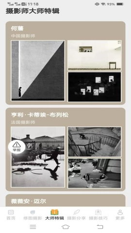 2、软件精心挑选了众多摄影大师的作品,用户可以通过浏览这些作品,学习大师们的拍摄风格和技巧。