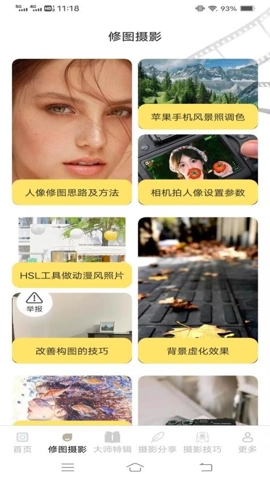 2、软件了大量摄影修图的教学知识和攻略,用户可以随时随地查阅。