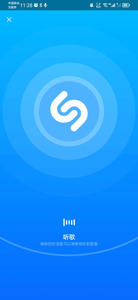 2、然后将音乐靠近手机设备,并等待识别结果