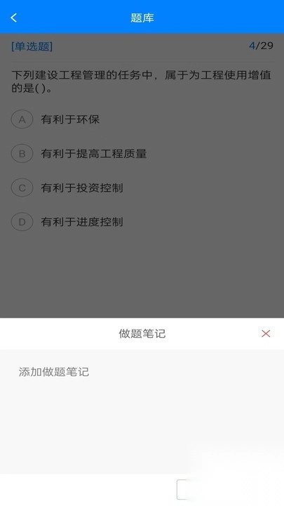 2、提供建筑类等专业题库,用户可以在学习后通过刷题提升专业能力,同时支持模拟考试功能,帮助用户巩固知识。