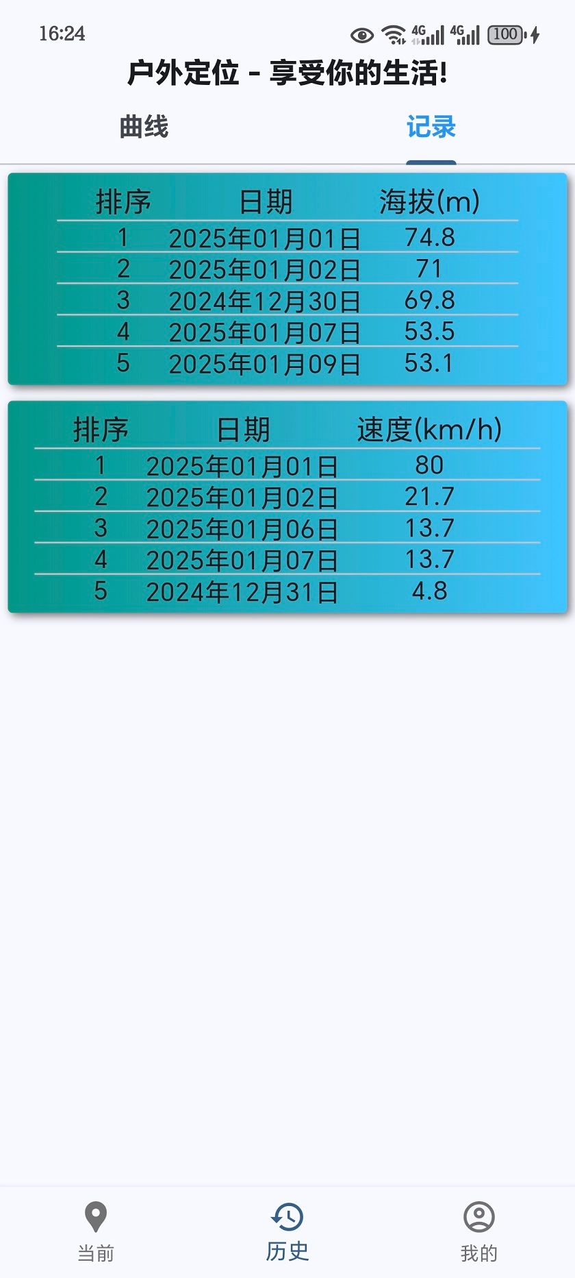 2、支持数据回看功能,可以通过历史记录查看一下此前到过的海拔高度以及当时的一个速度情况,也算是跟你一起见证了一段美好的回忆!