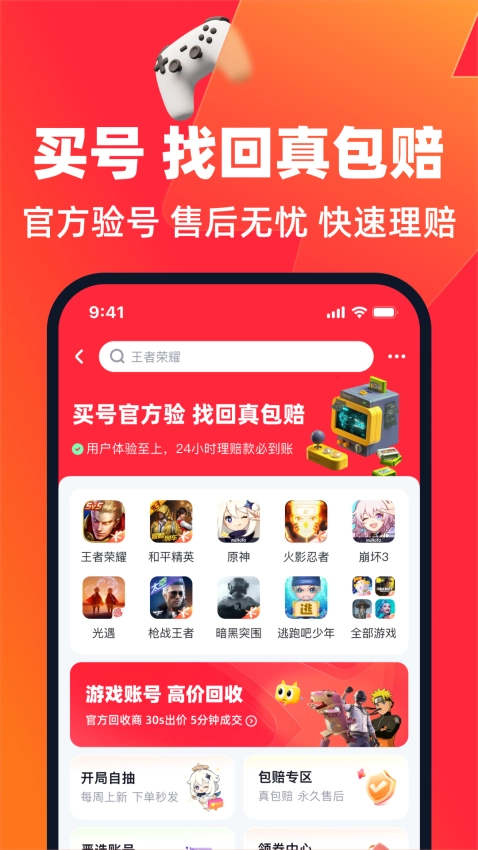 这里为用户提供了永久包赔服务,对用户的账号可以实时找回包赔,安全上号。