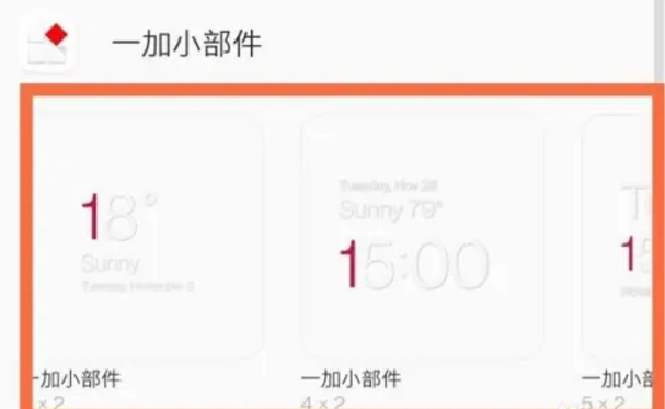 2、下滑找到一加小部件,选择一种天气样式,点击即可添加到桌面