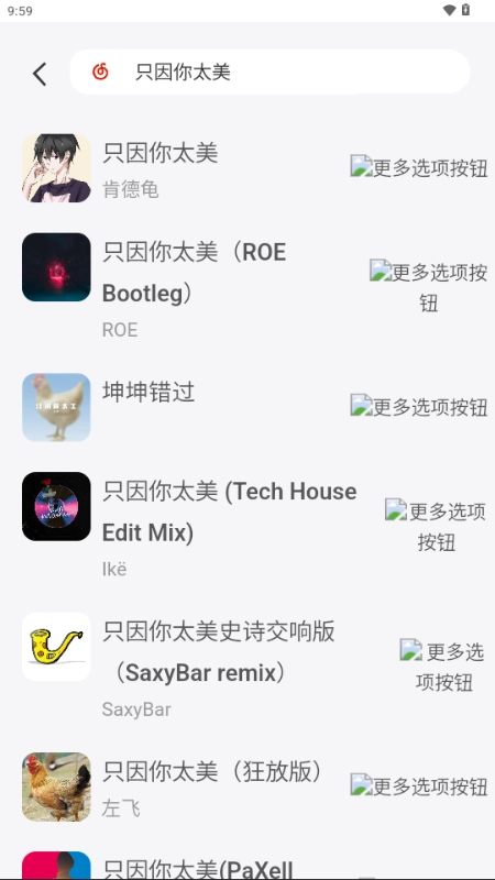 3、等待片刻之后,界面上就会出现相对应的音乐歌曲资源。