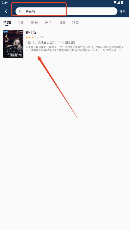 3、点击搜索后,在显示的相关搜索页面,点击对应的影片。