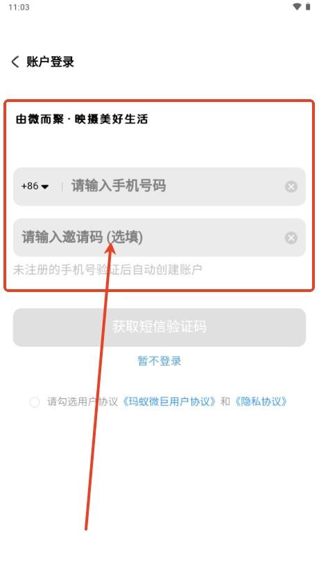 3、输入手机号码获取验证码;