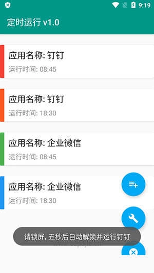 定时运行,一款方便实用的程序自动运行利器。它不仅能自动解锁手机,还能让程序自动开启,全程免费。只需简单设置相关数据参数,即可轻松运行,操作毫无难度。感兴趣的小伙伴,别再犹豫,快来体验吧!