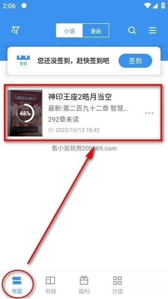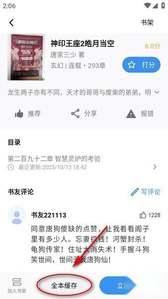 1、首先选择要的小说,进入阅读界面,底部有个“全本缓存”,点击一下。