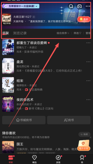1、并安装起点读书后,注册账号以便获取个性化推荐,让你能快速找到感兴趣的小说,提升查找效率。