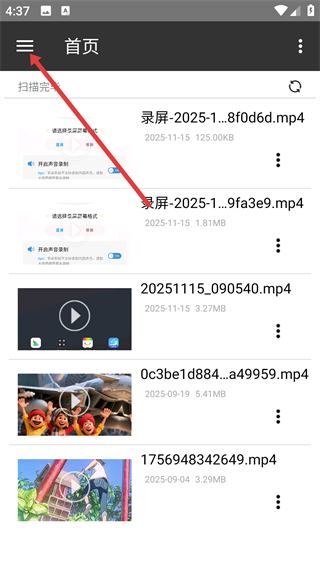 1、在首页界面,点击左上角三横线菜单按钮,展开功能列表。
