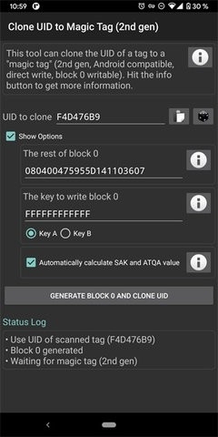 2、这款软件能够对制造商区块进行编写操作,实现标签的完整克隆,乃至复制UID标识符,从而满足数据读取、编辑以及备份方面的需求。