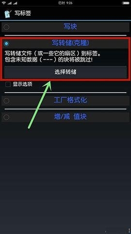 9、勾选已保存的标签,点击“选择转储”进入下一步操作(操作时需将空白卡放置在手机的NFC感应区域内)。