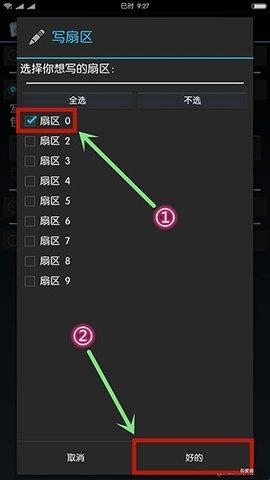 10、勾选“扇区0”数据,点击“好的”完成写入。