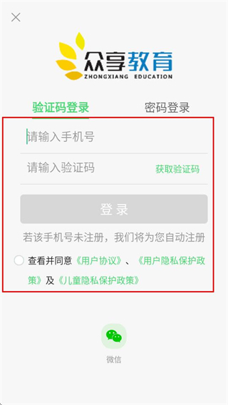 3、在登录页面,选择验证码登录方式,填写信息后完成登录。