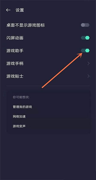 3、设置页面将游戏助手开启,