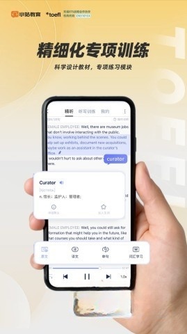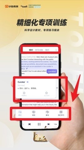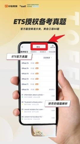 3、听力精听训练,既能让你通过泛听快速把握全篇内容,又能引导你逐句深入解析翻译。这里有TPO 1-54、OG及extra等丰富资源,助力你有效提升听力成绩。