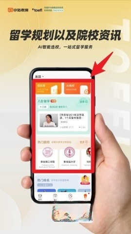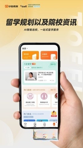 2、进入“留学”页面,查看院校库、AI选校和热门大学的申请资讯,对未来的大学生活提前做好打算。