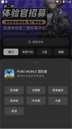 2、以PUBG为例,选择需要的区服;