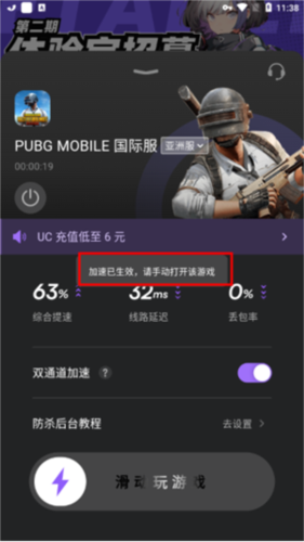 5、滑动后会出现下图提示,打开游戏即可享受加速服务。