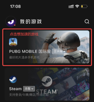 只需点一点卡片——就能一键加速并进入游戏。