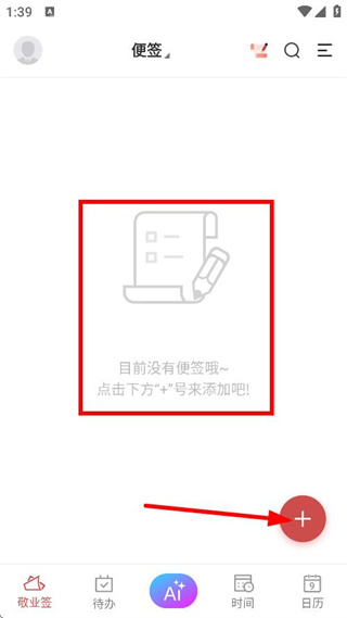 1、在便签页面,点击右下角+的符号,即可进入新增敬业签页面。