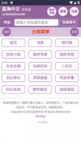 1、在蓝海书屋中注册并进入,选择自己感兴趣的频道和皮肤。
