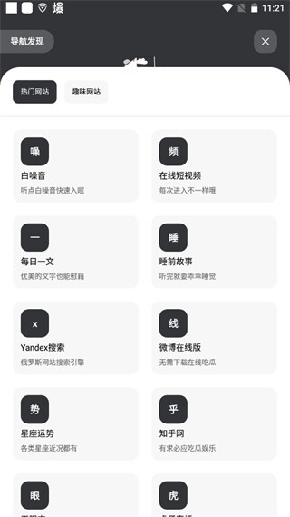 4、点击“导航发现”可以搜索网站或者游戏直播