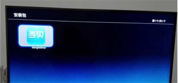 2、把U盘插到电视机的USB插口里,读取U盘的数据,找到当贝市场的安装包,开始安装,如果不能直接读取U盘的数据,就在电视上打开‘电视文件管理器’,再读取U盘里的数据进行安装。
