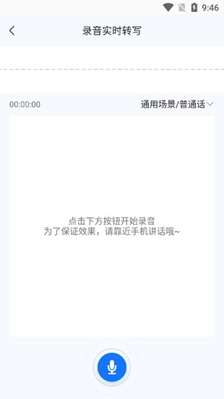2、进入功能界面后,点击下方的蓝色按钮进行语音转写