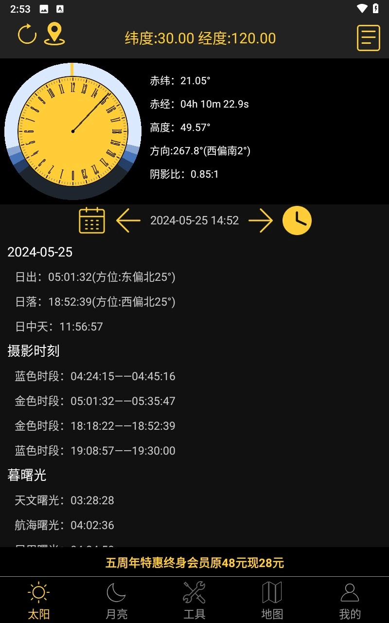 6. 日出日落,暮曙光,摄影时刻,太阳赤道坐标年表