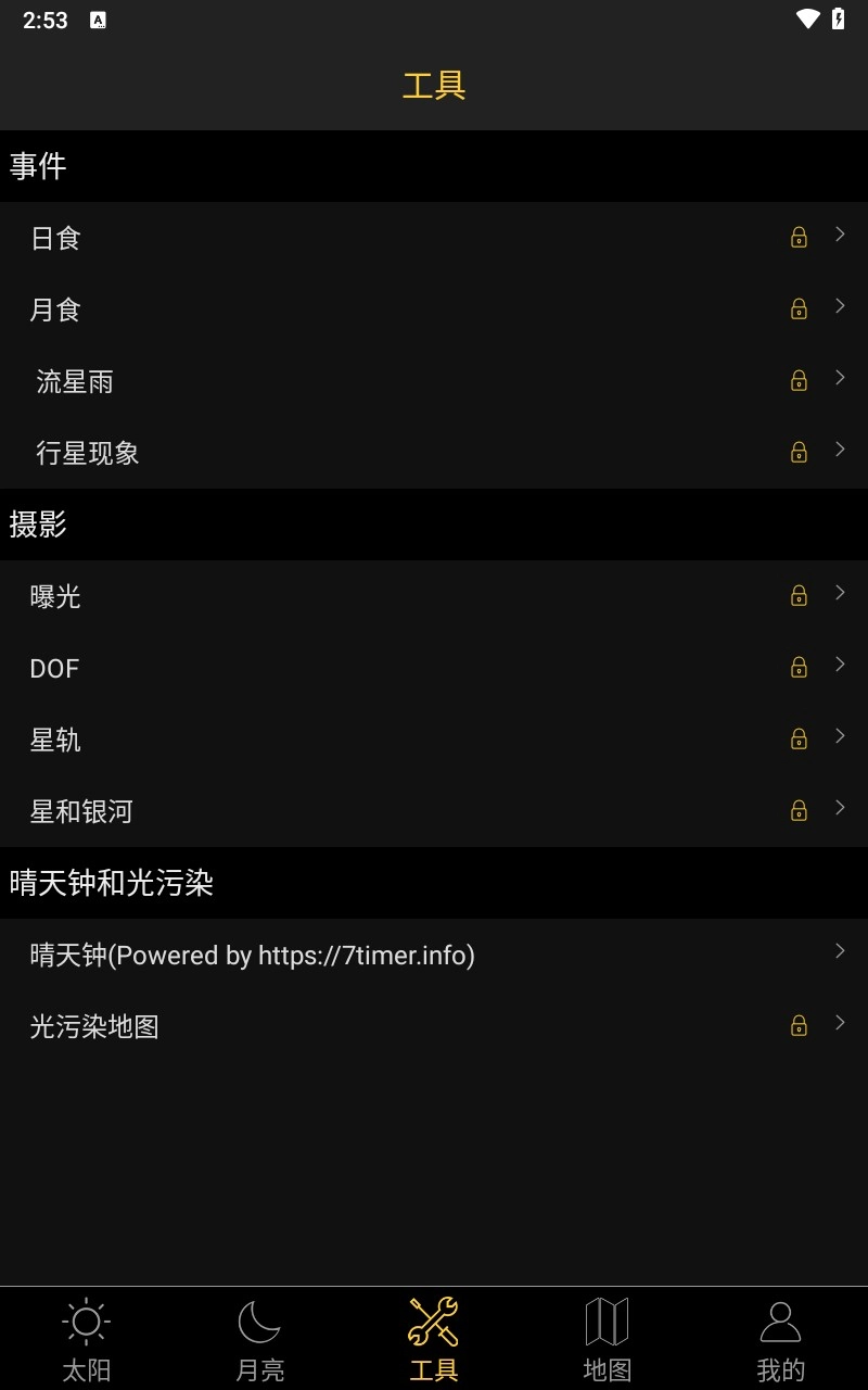 4、工具界面还有日食月食等工具