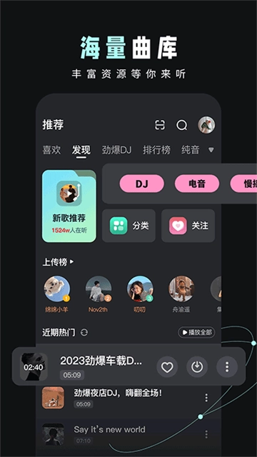 DJ音乐库收录了海量不同风格的DJ音乐资源,全部免费供大家收听。只要有需要,用户可以直接通过名称搜索查找。除了DJ音乐,这里还有各类其他风格的音乐可供选择。该软件不仅支持在线收听,还提供离线功能,方便用户随时畅听。