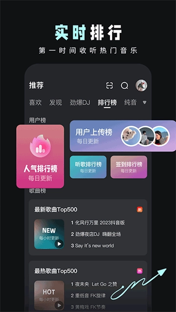 4、榜单信息,及时更新,第一时间听到最in歌曲。