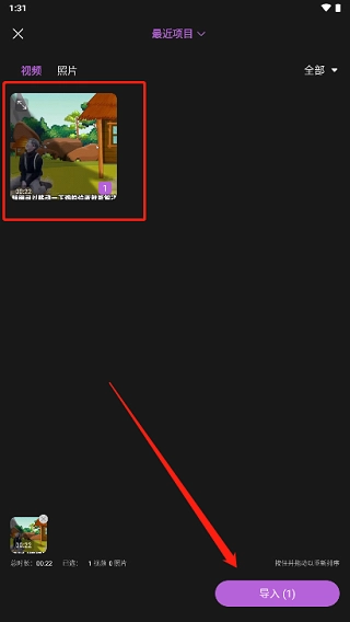 2、选择要剪辑的视频,点击导入。
