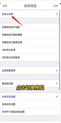 4、在地图选择页面中,有许多地图图层可以选择,点击其中一个即可。另外也可以“自定义设置地图”。