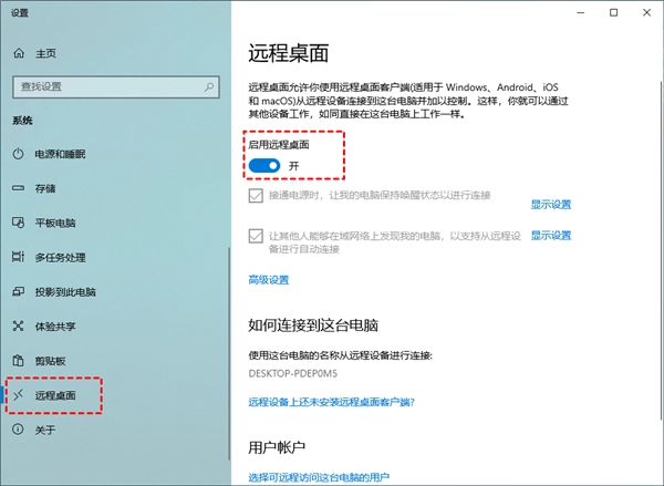 3、点击“启用远程桌面”。