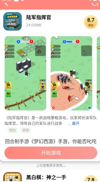3、点击进入游戏详情页面,然后点击开始游戏按钮