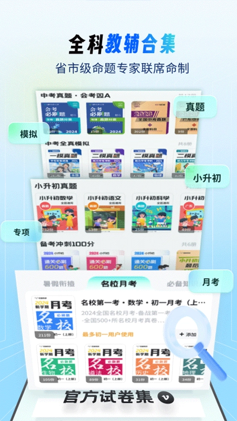 1、试卷类型广,命题真,效果佳,汇集大量全国押题密卷,真题模拟题,考霸精选试题等,实时同步更新最新试卷内容,只为带来更好的提分冲刺效果。