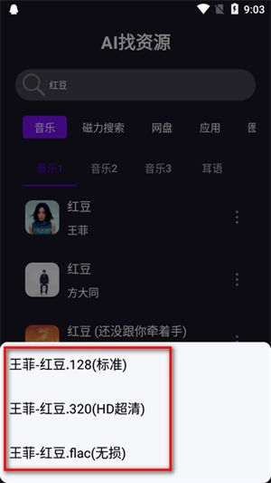 4、然后点击选择不同的音质直接