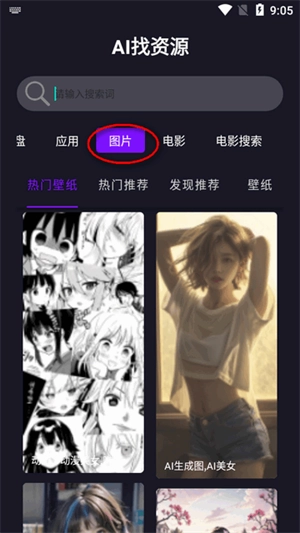 2、进入软件首页之后,可以看到各种应用,图片,电影等资源。