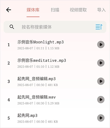 6、视频提取音频:从抖音、快手各类短视频中,提取自己喜爱的音频,剪辑裁剪音频;