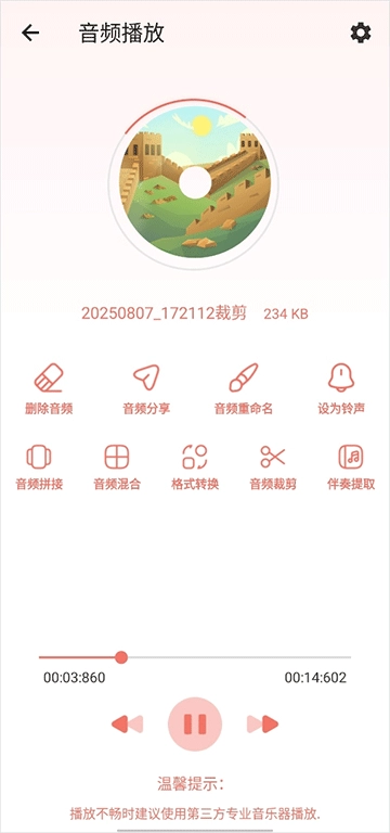 3、音频剪辑:可以对各类型的音频剪切制作,提取你中意的音频;