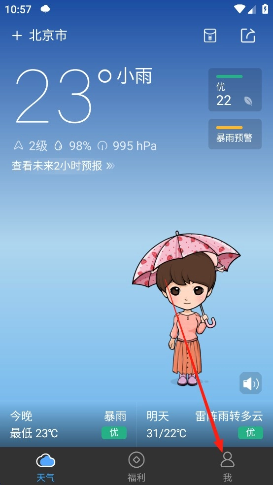 1、启动墨迹天气极速版应用,然后点击界面中的【我】选项。