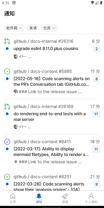 GitHub 除了能让用户查看代码外,还具备合并拉取请求、回复用户问题、查看错误报告等多种功能。用户无需借助复杂的开发环境,就能在 GitHub 上完成不少操作,像分享设计讨论的反馈、审查少量代码等。而 Android 版 GitHub 更是方便用户随时随地推进工作,通过这款应用,用户可以直接和团队保持联系、对问题进行分类,甚至完成合并操作。