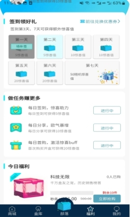 4. 平台对不同商品种类进行了全面划分,让你能轻松挑选心仪商品。平台致力于为消费者构建安全可信的交易环境,提供丰富的正品专业保障。这里汇聚了各类精选产品,每日都有新鲜福利与惊喜等待用户发现。新用户注册即可领取专属大礼包,邀请好友还能解锁多样奖励机制,轻松获取额外收益。若对购买的盲盒不满意,支持一键寄售功能,彻底消除用户的后顾之忧。此外,平台还设有任务系统,用户通过每日签到、分享好物或完成首单购买等简单操作,就能累积惊喜值,兑换更多专属权益。