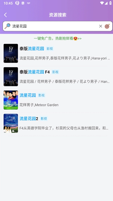 2、然后输入你要搜索的资源名,并在搜索到的资源内点击资源进行观看即可。