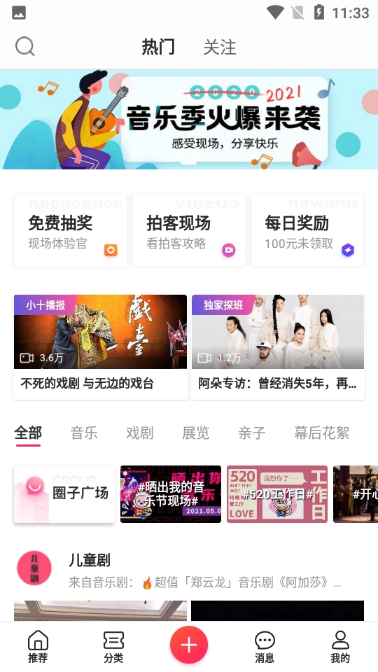 热门演出每周抽奖,轻轻一点,免费带你亲临爱豆现场。