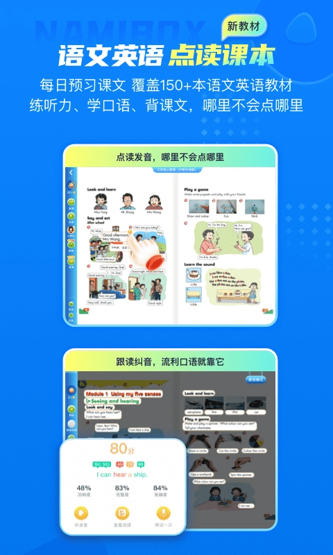 2、纳米盒在手机上就能智能进行点读,作为手机版本的点读工具,让预习复习能快人一步。