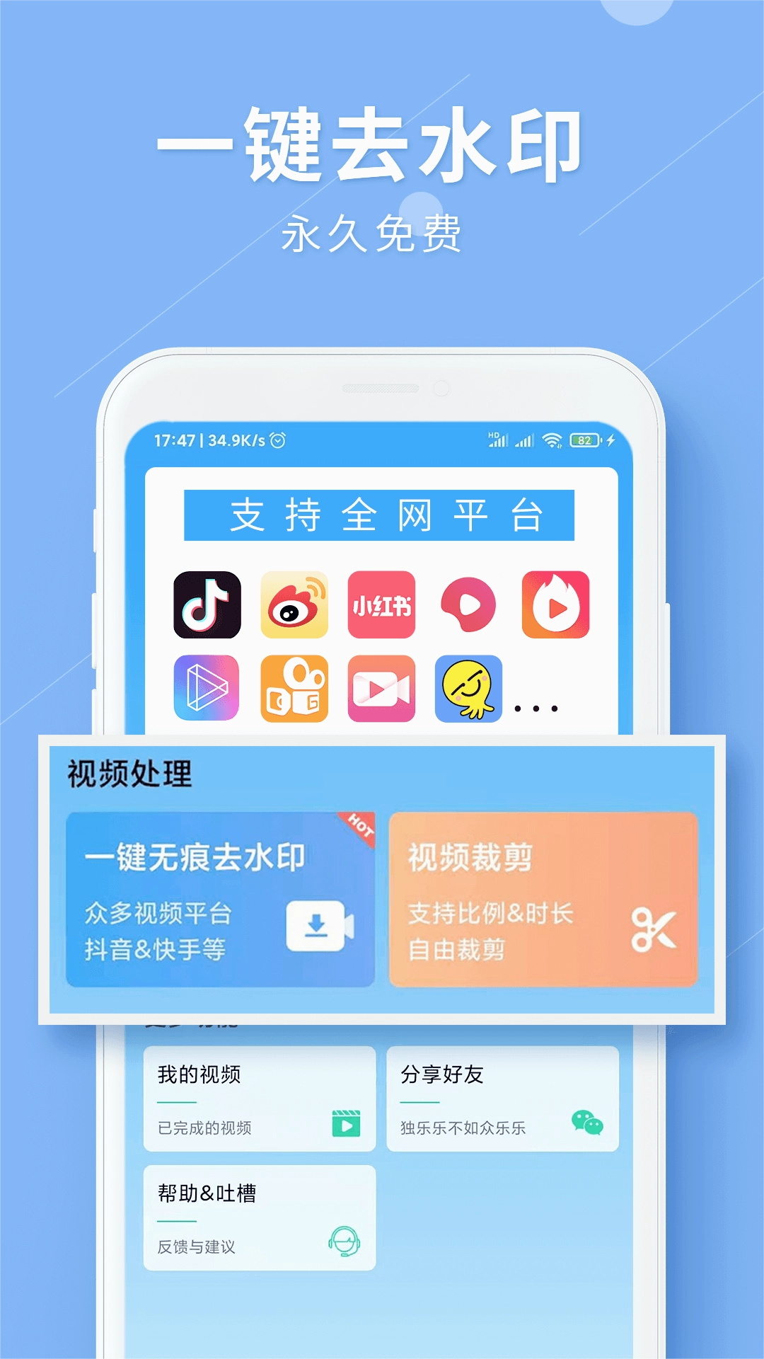 1. 智能去水印:可自动识别图片与视频里的水印并完成去除,全程无需手动干预。