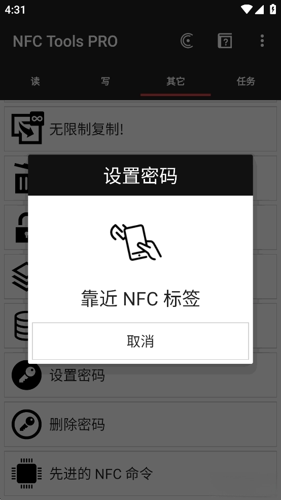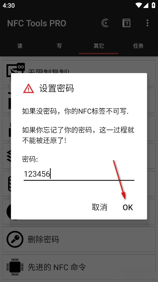 NFC Tools PRO需要设置密码后才能使用NFC标签,以下是设置密码的教程: